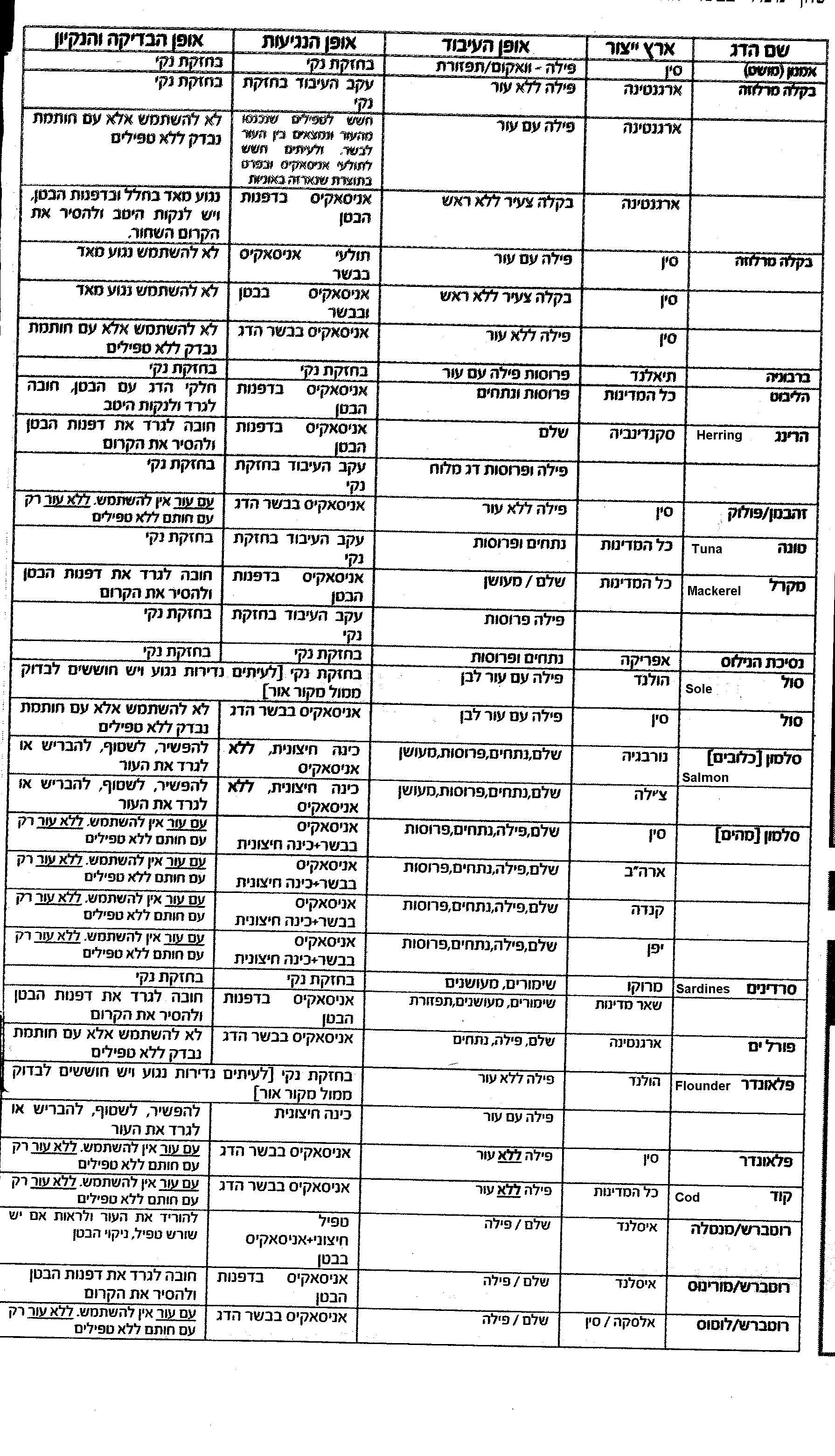 Click here for a Hebrew Chart of fish commonly sold in Israel.